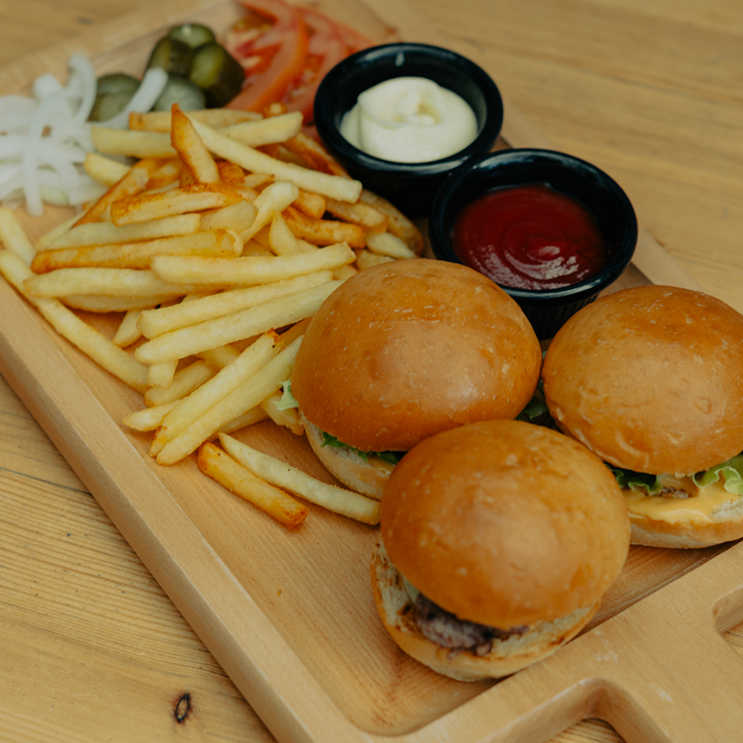 Beef 120g, Lamb Beef 80g, Onion, Tomato, Pepper, Tartar Sauce.