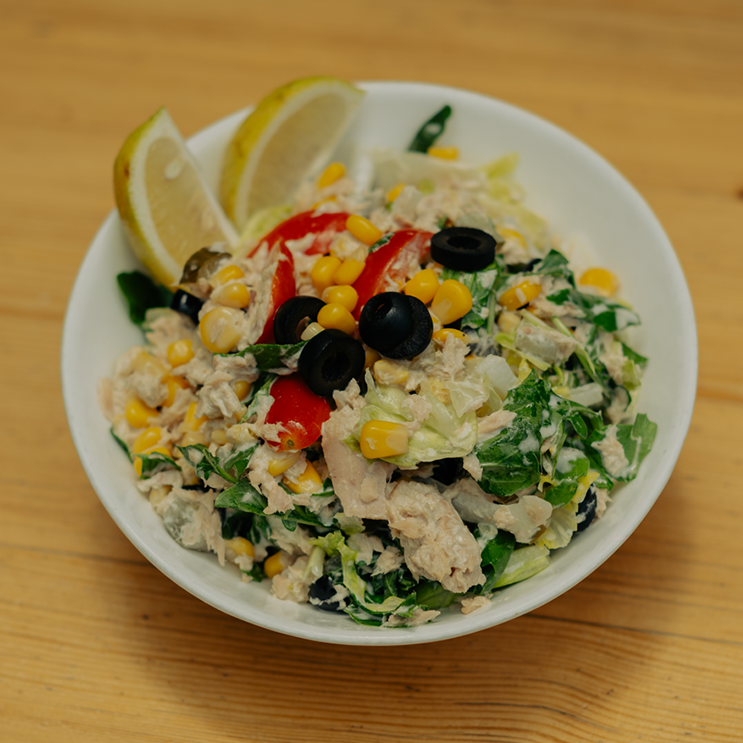 Tuna, Lettuce, Pickled Cucumber, Arugula, Black Olives, Cherry Tomatoes, Corn, Olive Oil, Lemon Juice, Mayonnaise Sauce.